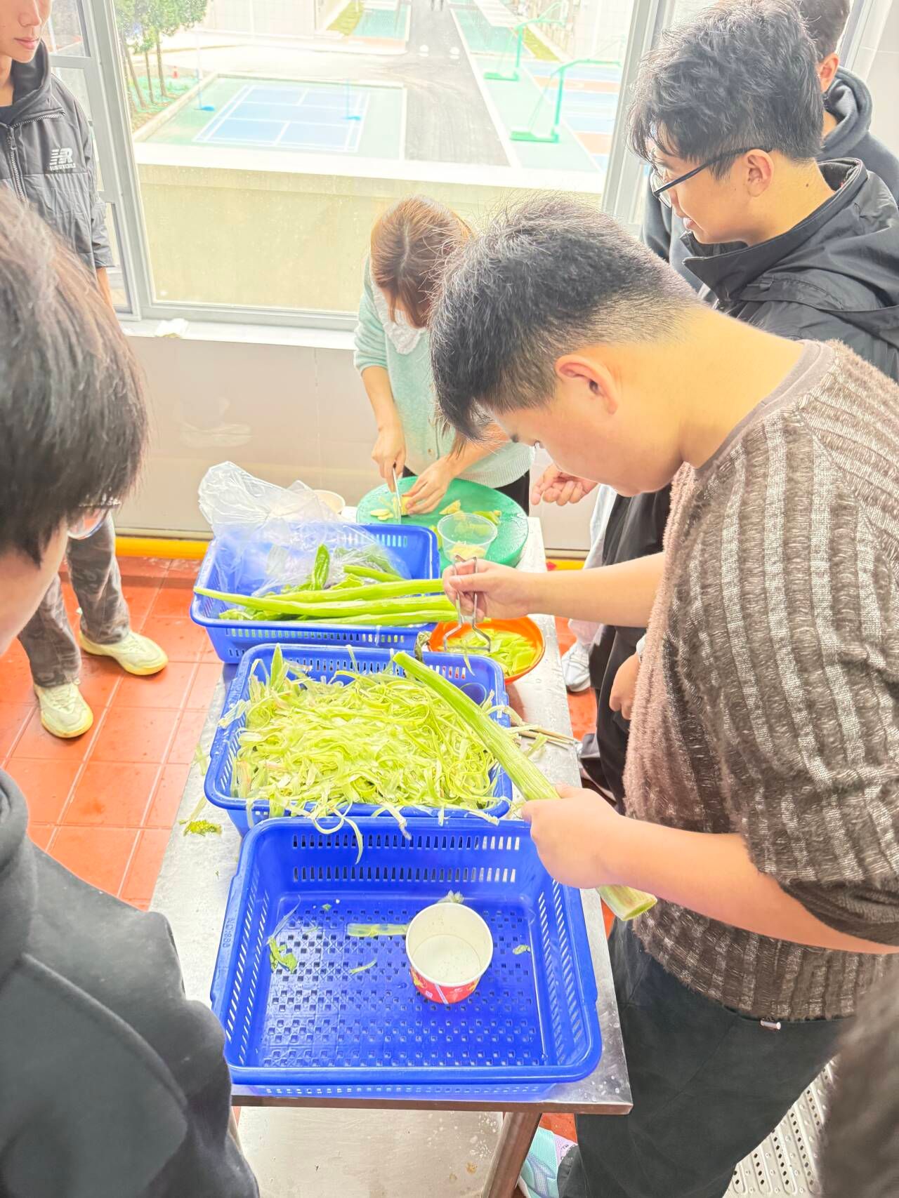 随后,同学们按照前期分组,领取各自小组的食材,在食堂师傅的演示下、在学校老师的指导下分工协作,从摘菜、清洗,到切丝切片,再到炒制、调料、装盘……在同学们的合作下,小炒莴苣、宫保鸡丁、酸辣土豆丝等数十道家常菜陆续上桌。每一道菜品都凝聚着同学们的匠心与汗水,不仅色香味形俱佳,更蕴含着对传统饮食文化的理解与传承。