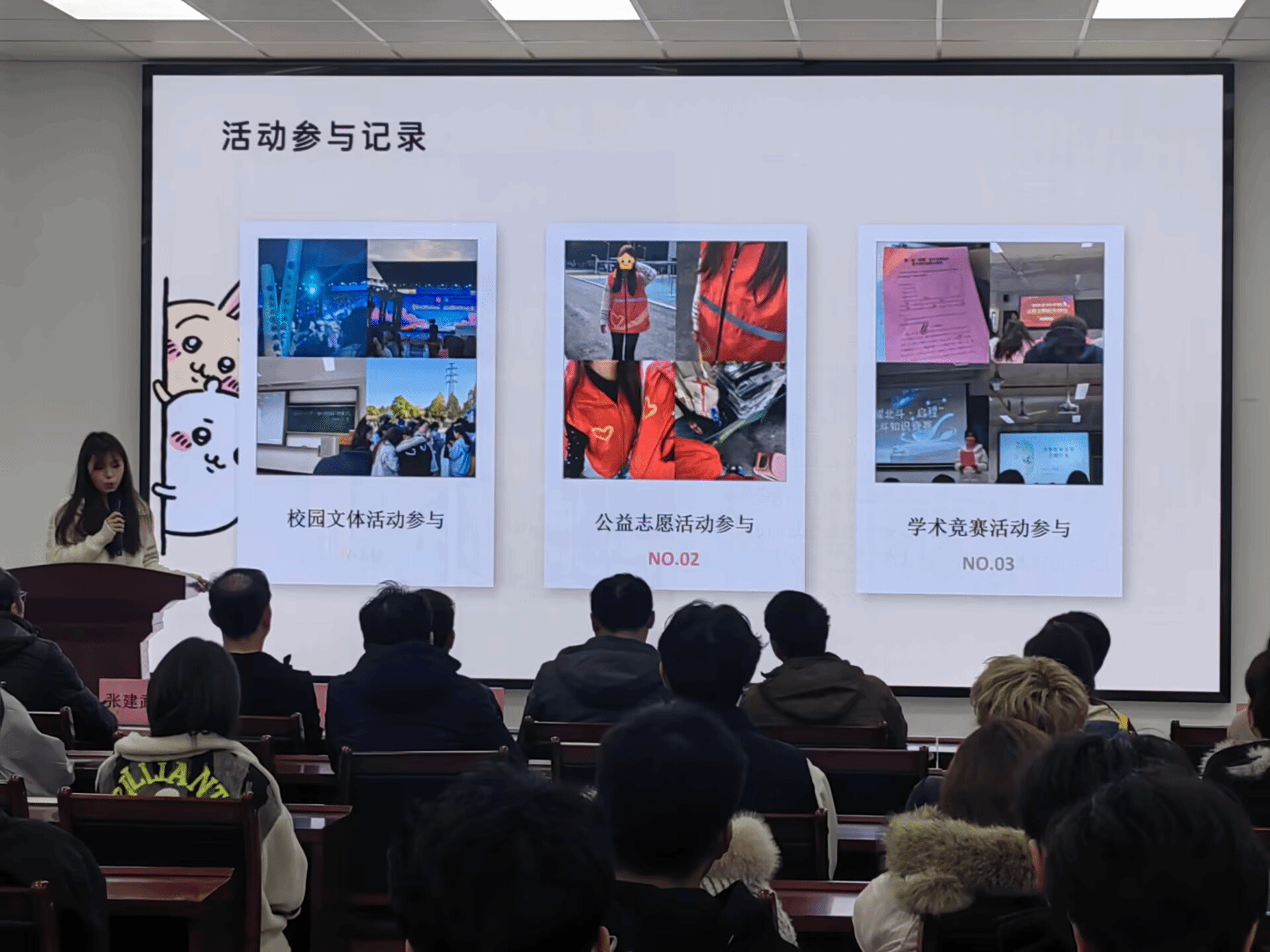 作为学生社区的核心单元,宿舍是学生日常生活、学习交流的重要场所,也是社区综合管理与育人功能落地的关键载体。本次评选严格遵循“学院筛选、择优推荐、校级评审”流程,前期经各二级学院层层把关、精准遴选,文化大道校区16个宿舍、长江新城校区6个宿舍脱颖而出,晋级校级汇报展示环节。汇报现场,各宿舍代表通过精心制作的 PPT 与生动讲解,从精神风貌、卫生管理、文化氛围、学风建设、成员凝聚力等维度,全面展示了宿舍在自主管理、互助共建等方面的特色做法--有的打造学习型宿舍,依托社区研学资源开展互助答疑;有的构建文化型宿舍,融入专业特色与青春元素营造育人氛围;有的践行服务型宿舍,主动参与社区志愿服务与安全巡查,充分展现了我校学子在“一站式”社区建设中的主体作用与良好精神风貌。
