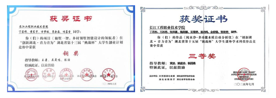 ▲丁若彤参加“挑战杯”获铜奖、三等奖